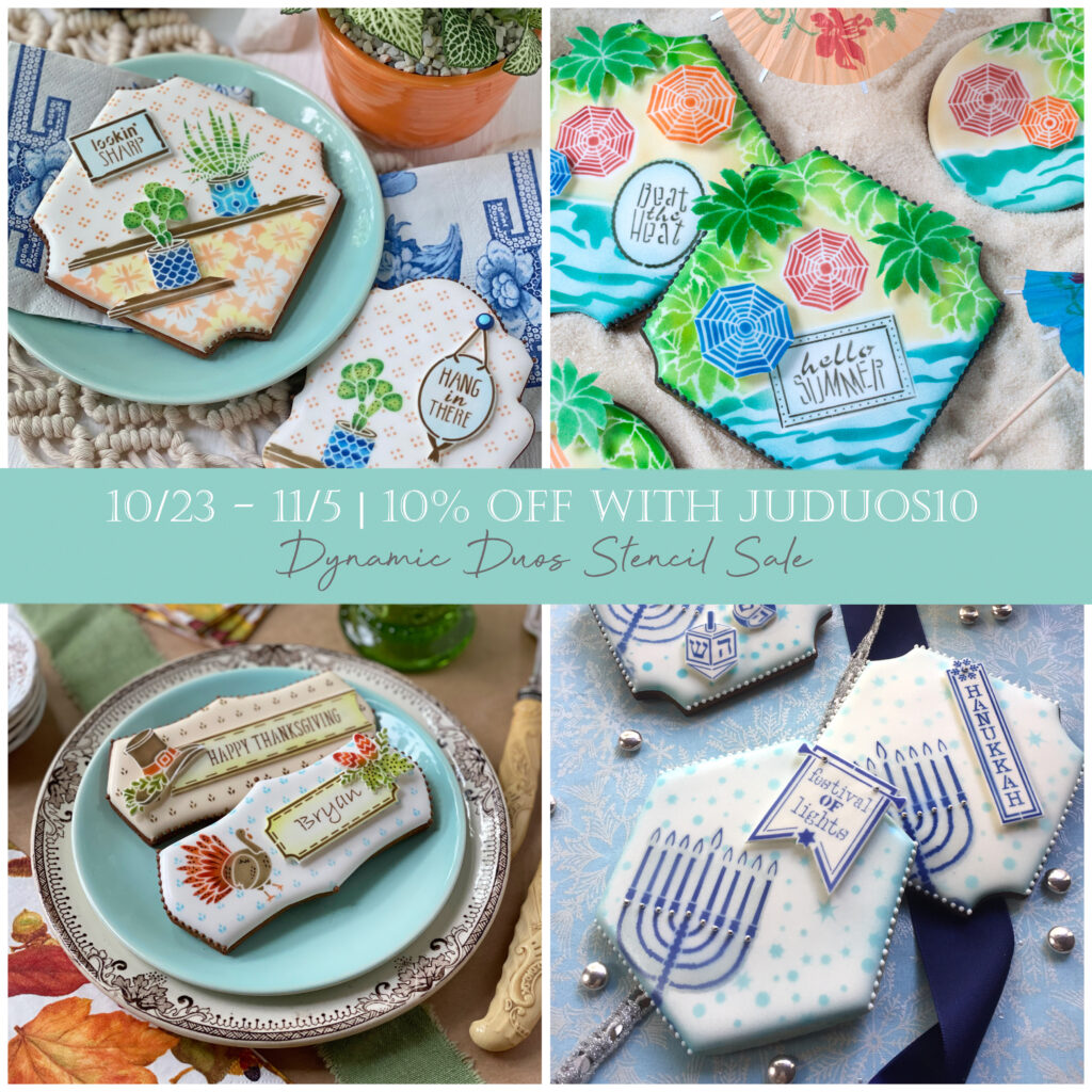 SHOP my Dynamic Duos™ stencil collection on my partner Confection Couture Stencils’ site. Again, be sure to use code JUDUOS10 at checkout.