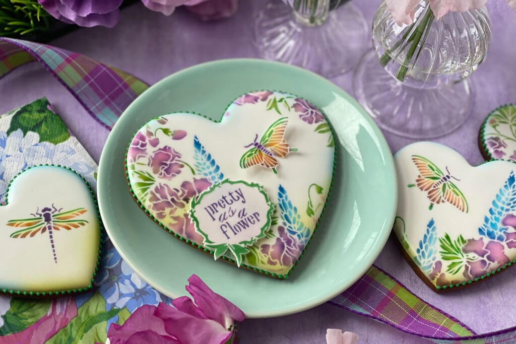As you probably know by now, I’m not one to leave you without a sale for too long, and guess what?! Today, I have two for you! Yay! The first is a sale on all of my Dynamic Duos™ stencils, which are in the follow-on series to my Prettier Plaques™ series that was on sale last week. My Duos™ are slightly more complex, insofar as each design is comprised of two stencil sets (a background set and a message-frame set), and each set has more stencil elements. But by virtue of their composition, my Duos™ afford many, many more design possibilities. You can swap the various stencil elements around near ad infinitum such that no two cookie designs ever need to look alike. So, no, I’m not exaggerating when I say the cookie options with these two-set designs are truly dynamic! (Hence, their name Dynamic Duos™! Get it?! 😉) Plus, the airbrushing-stenciling techniques that I use with them are exactly the same as those for my easier Prettier Plaques™ series.