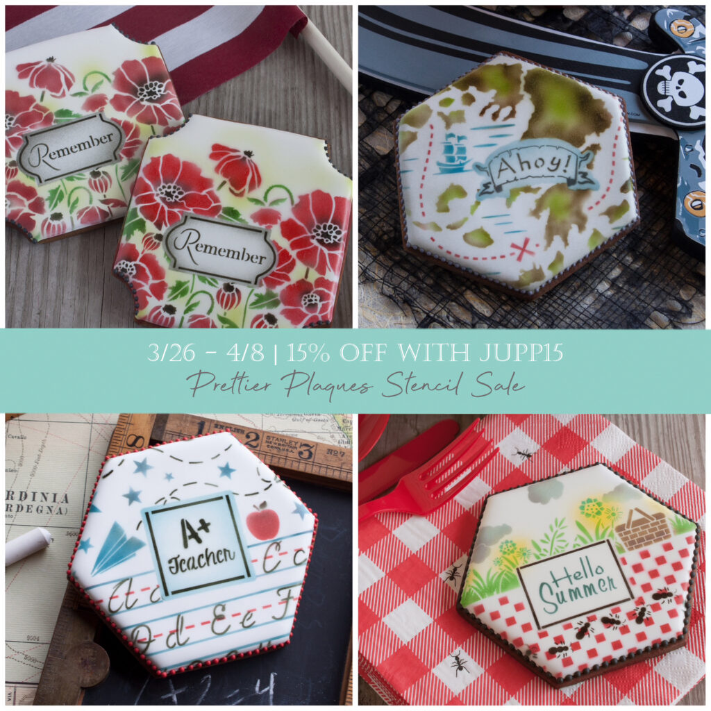 Yes, indeed, each stencil set in my newly launched sale is as pretty as a picture (with a framed message on top)! If you shop the link below before April 8 and apply code JUPP15 at checkout, you’ll get 15% off every stencil set in my Prettier Plaques™ series. Remember: All of my Prettier Plaques™ are five-piece layered sets that allow you to overlay a framed message – or not – on top of a pretty background pattern with no interference from that pattern. They’re super simple to use, and are perfect for beginners! And, of course, if you ever have any questions about how the layering of my stencils works, I’m just an email away!
